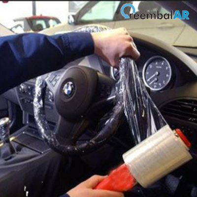 O filme stretch com aplicador ajuda a proteger o produto durante o transporte, também conhecido como filme de polietileno.
